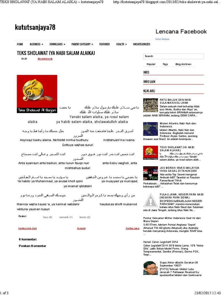 TEKS SHOLAWAT (YA NABI SALAM ALAIKA) ~ kututsanjaya78