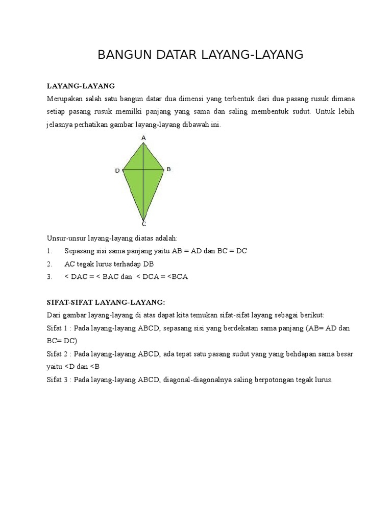 Bangun datar layang layang Sebutkan sifat sifat bangun datar …