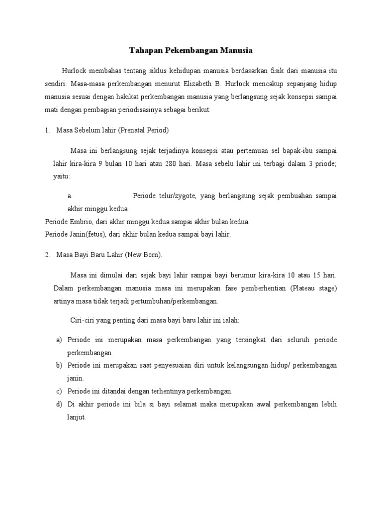 Tahap-tahap apa saja yang terjadi pada perkembangan manusia yang …