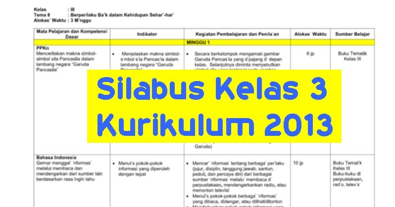 Silabus K13 Kelas 3 Revisi 2019 dan 2018 - GuraruGuraru