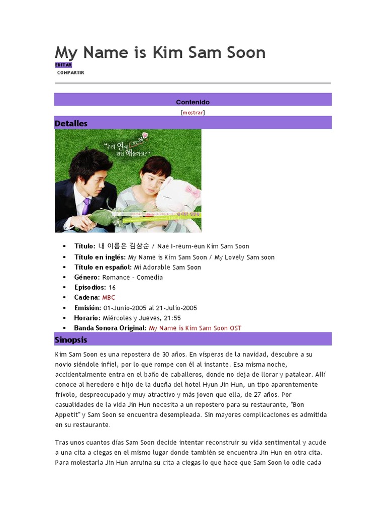 Drama Korea My Name Is Kim Sam Soon Subtitle Indonesia - rhinoretpa
