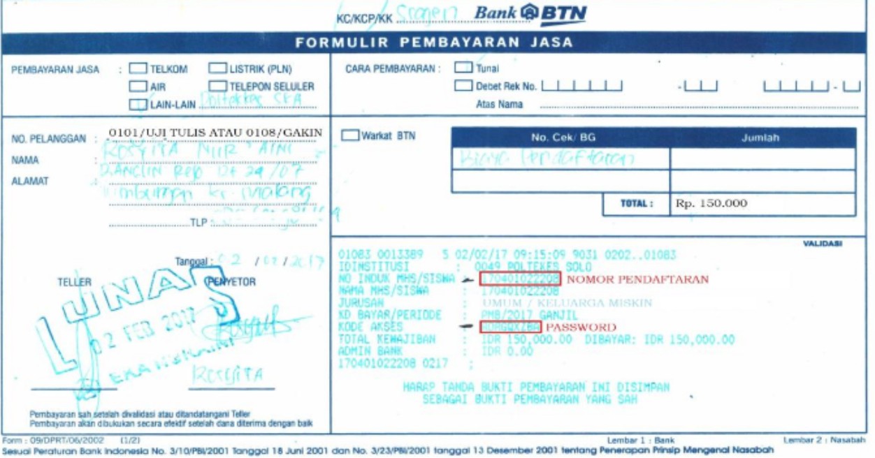 PANDUAN SELEKSI PENERIMAAN MAHASISWA BARU JALUR .Contoh Slip Bukti …