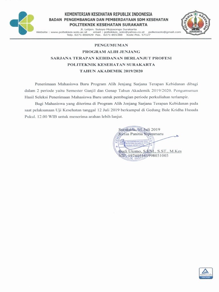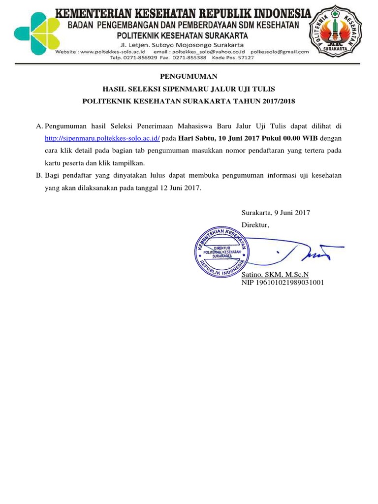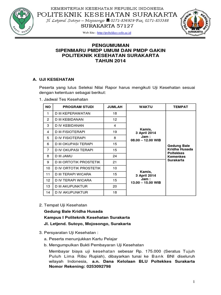 PENGUMUMAN PELAKSANAAN UJI KESEHATAN poltekkes-solo.ac.id …