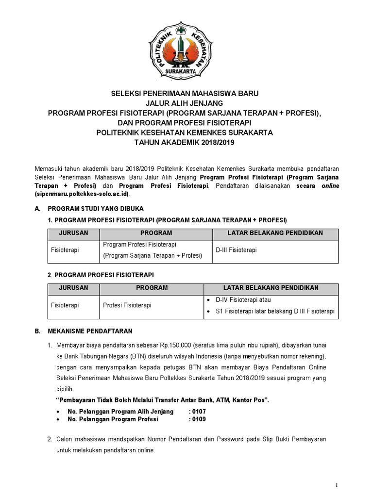 JURUSAN FISIOTERAPI POLTEKKES KEMENKES SURAKARTA: Seleksi …