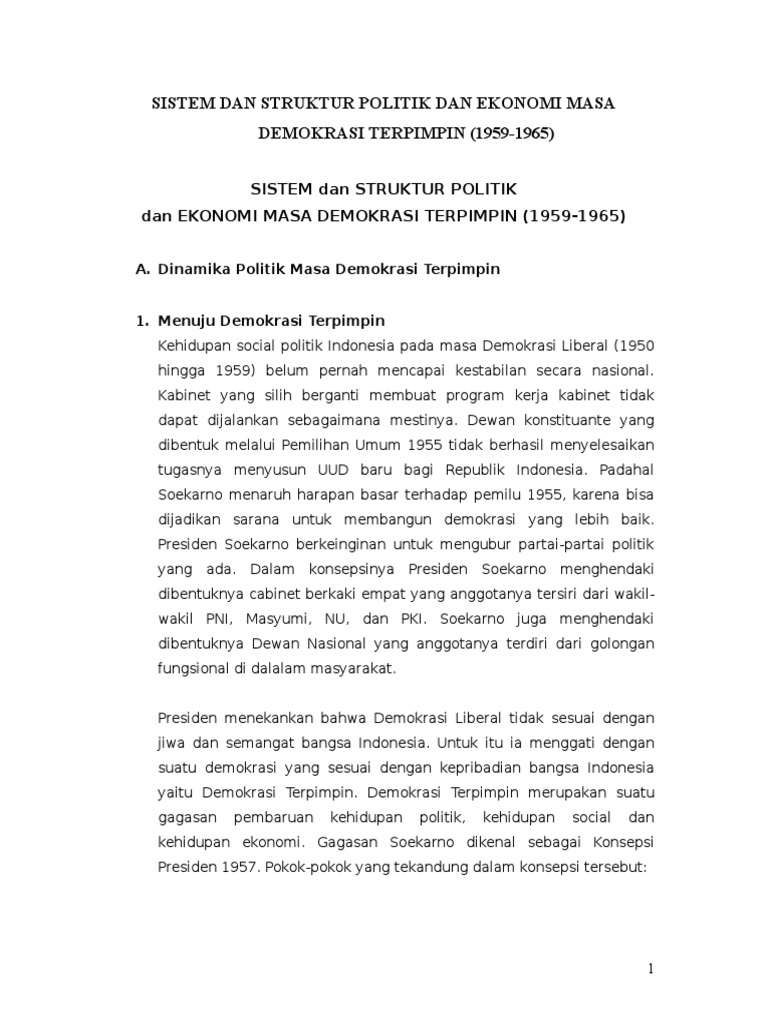 MAKALAH SEJARAH : SISTEM DAN STRUKTUR POLITIK DAN EKONOMI MASA DEMOKRASI TERPIMPIN - [DOCX Document]