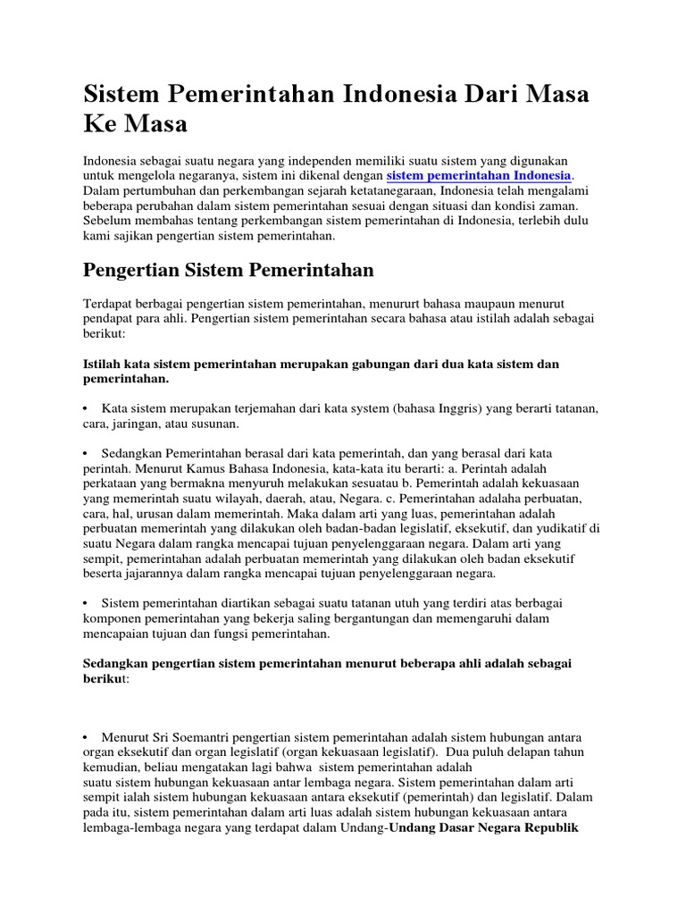 DOC) SISTEM PEMERINTAHAN INDONESIA DARI MASA KE MASA | Bagas W …