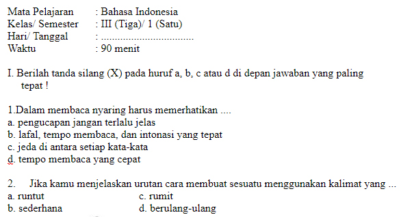 Soal Bahasa Indonesia Kelas 3 - bloggerfasr