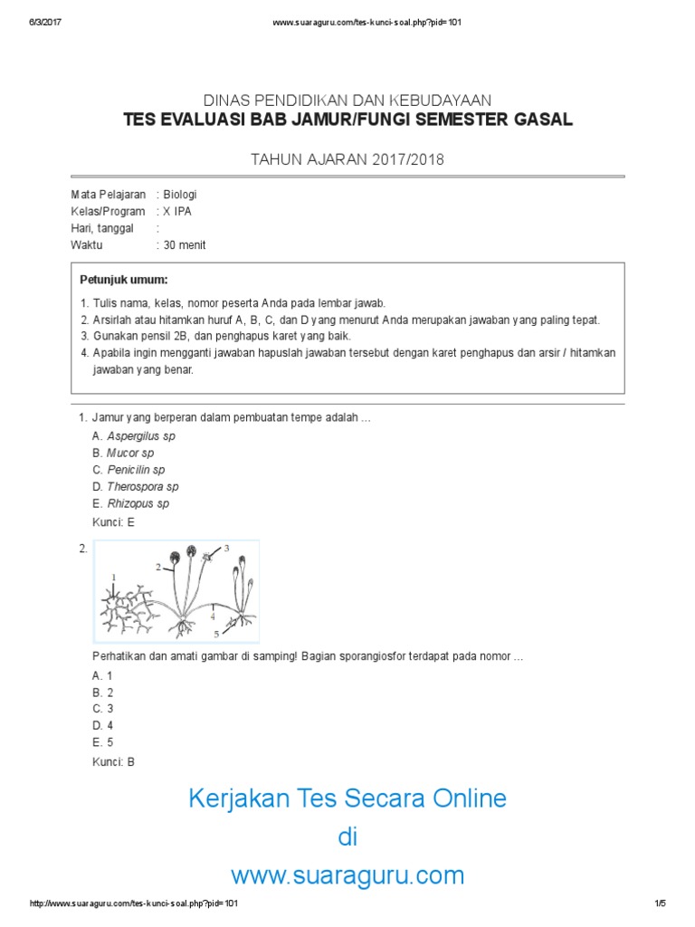 Contoh Soal Biologi Belahan Fungi (Jamur) (Biologi Kelas X Sma/Ma …