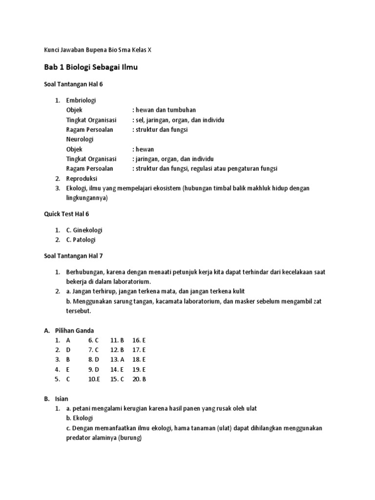 DOC) Kunci Jawaban Bupena Bio Sma Kelas X K13 N | patrik handi …