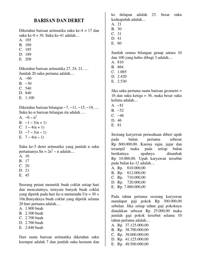 Bank Soal dan Pembahasan Matematika Dasar Barisan dan Deret …