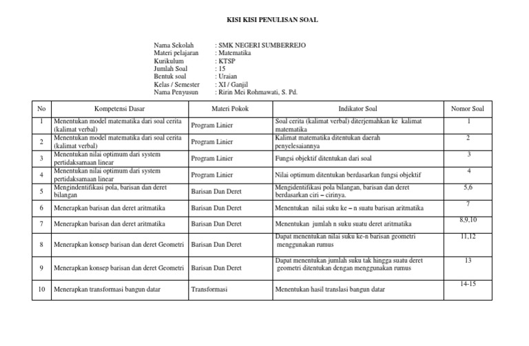 Contoh Soal Barisan Dan Deret Aritmatika Smk