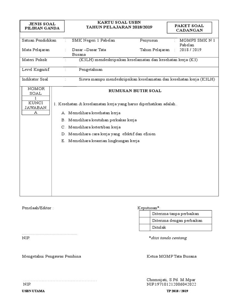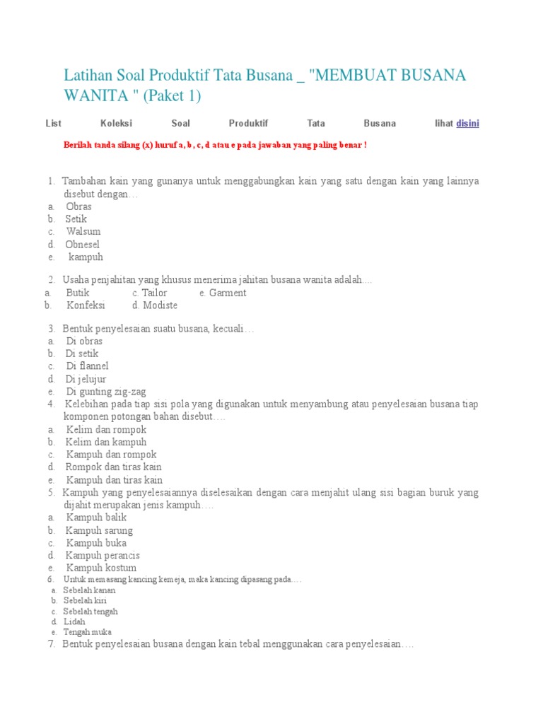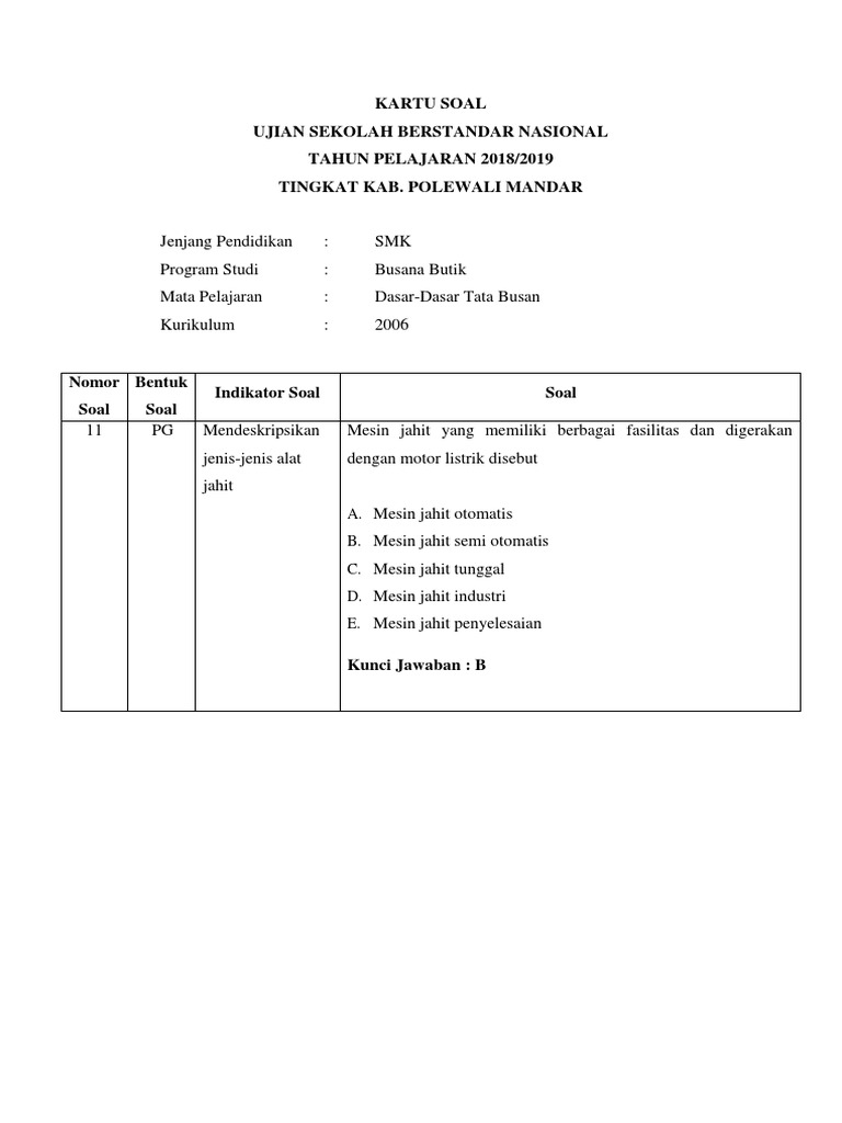 Soal Dan Kunci Jawaban Tata Busana Smk Pdf - Tahun Ajar