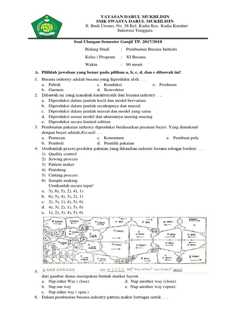 Soal Dan Jawaban Pembuatan Busana Industri - Guru Galeri
