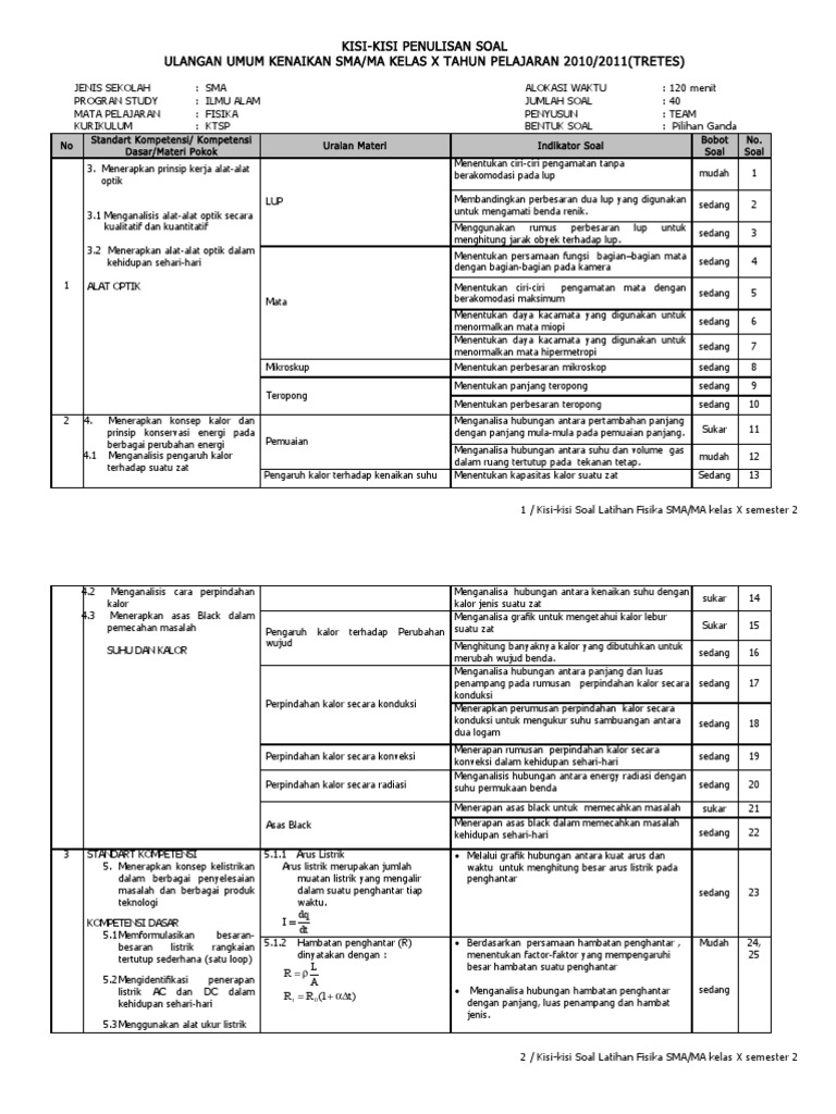 Kisi-kisi Fisika X semester genap