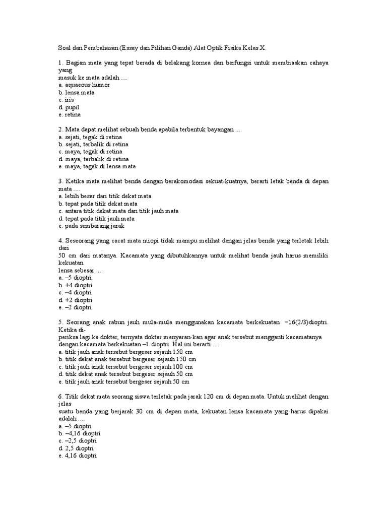 Essay Dan Kunci Jawaban Alat Dan Optok – IlmuSosial.id