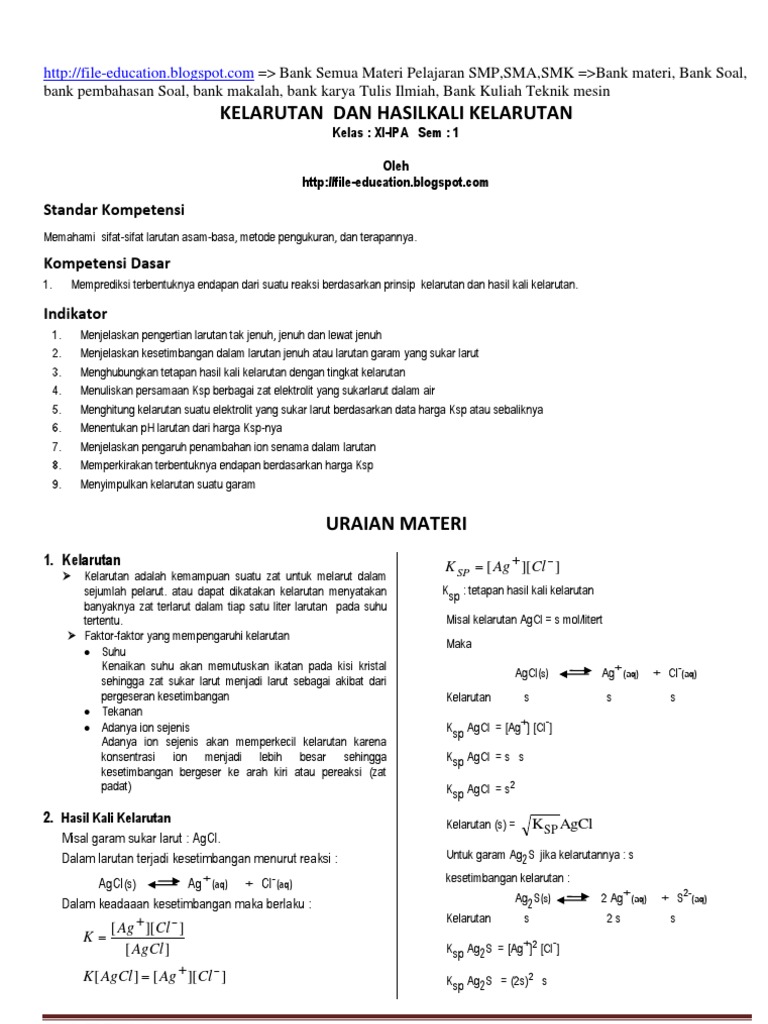 DOC) MODUL PEMBELAJARAN KELARUTAN DAN HASIL KALI KELARUTAN | Aisya Assrafy and Fitrianur Meilin - Academia.edu