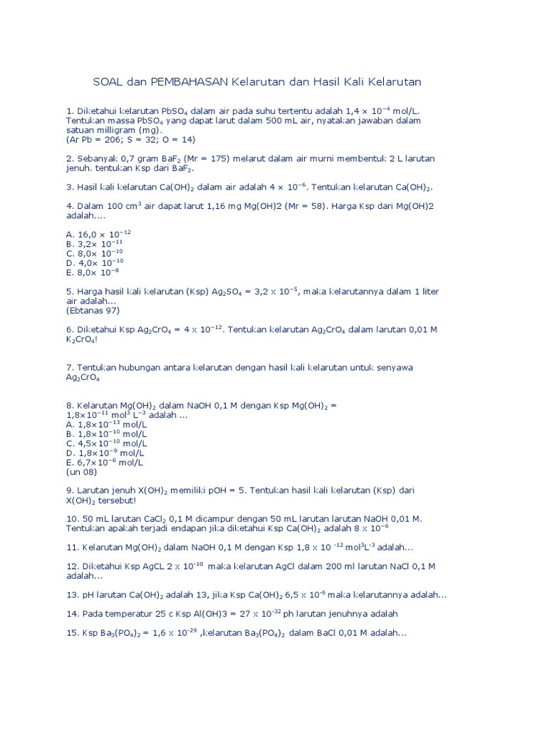 Contoh Soal Kelarutan Dan Hasil Kali Kelarutan - Contoh Soal Terbaru
