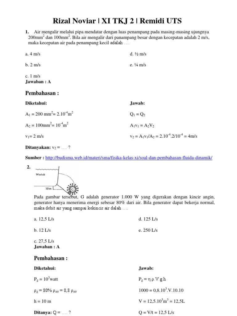 kumpulan ilmu dan pengetahuan penting: Contoh Soal Fisika Fluida