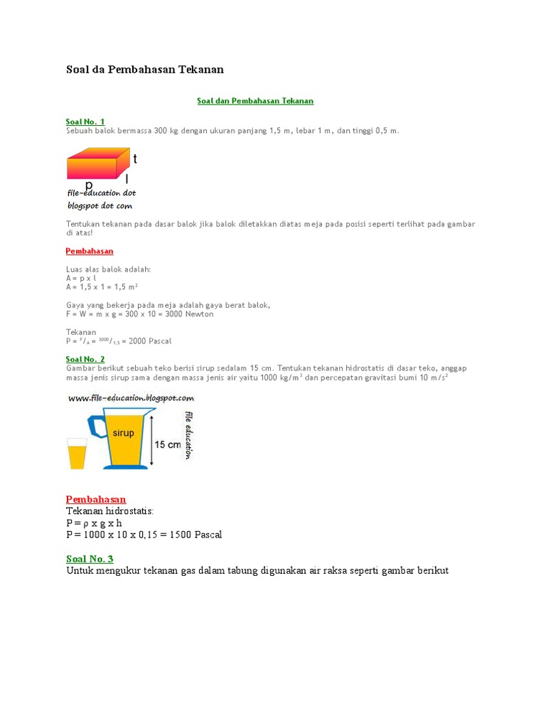 Contoh Soal Dan Pembahasan Tekanan Zat Padat Alsen – Corona Todays