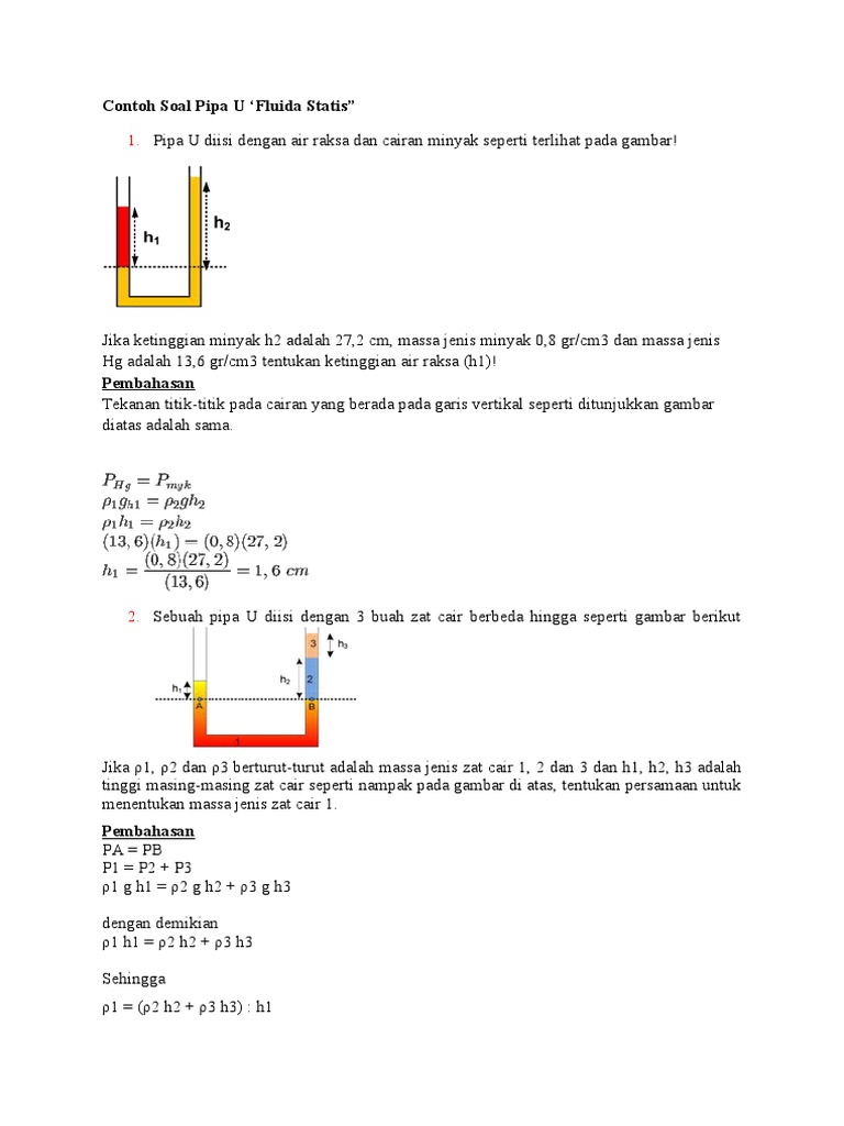 Contoh Soal Dan Pembahasan Tentang Fluida Statis