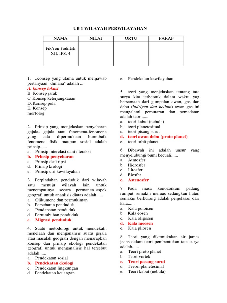 DOC) Soal UN Geografi + KUNCI JAWABAN | siti dewi - Academia.edu