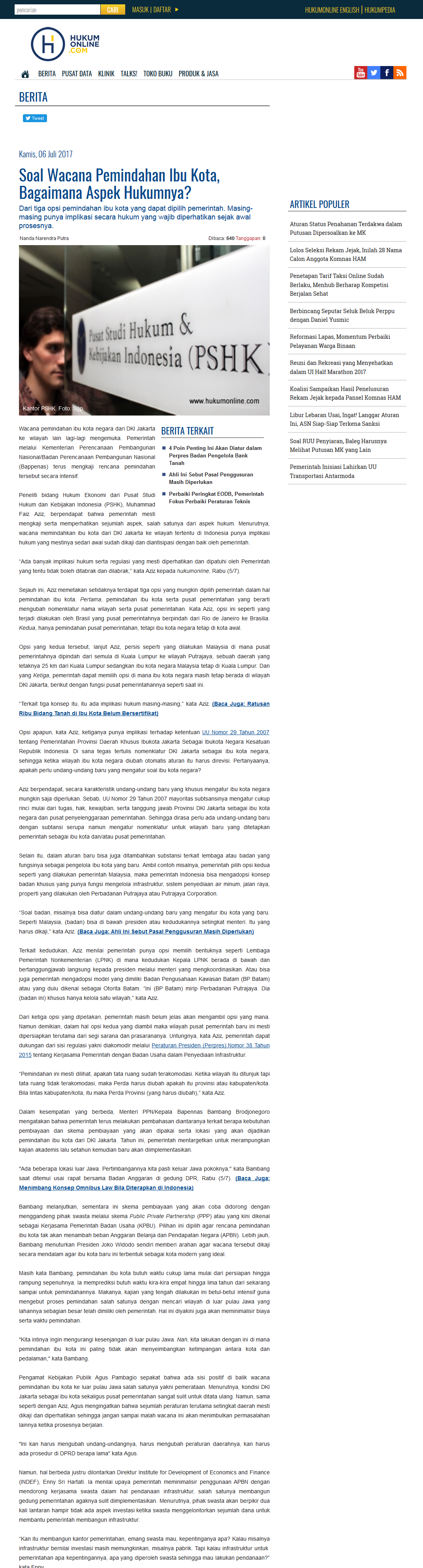Soal Wacana Pemindahan Ibu Kota, Bagaimana Aspek Hukumnya? - pshk …