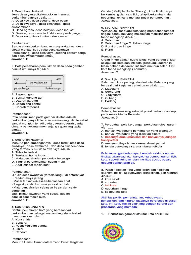 Ccontoh Soal Geografi Struktur Keruangan Desa Dan Kota Dan Jawaban …