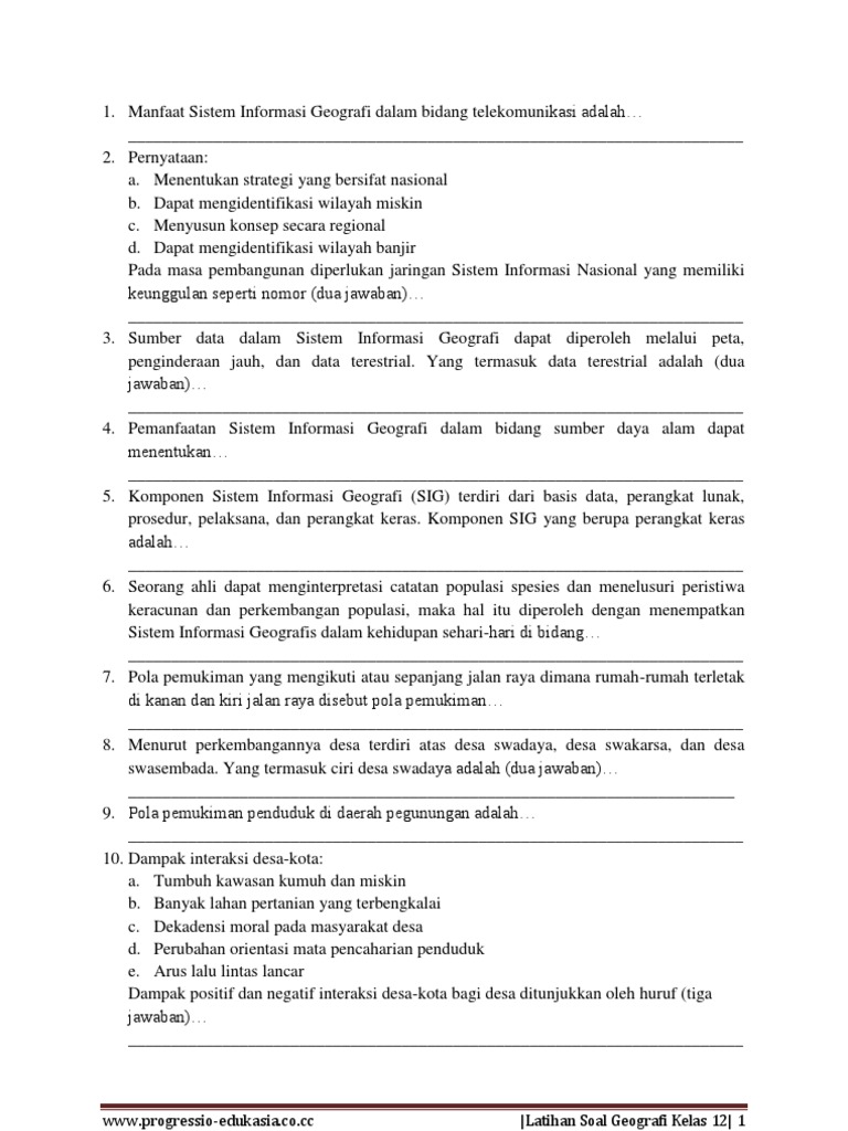 50 Soal Geografi Kelas 12 (Pilihan Ganda) & Jawaban (SIG …