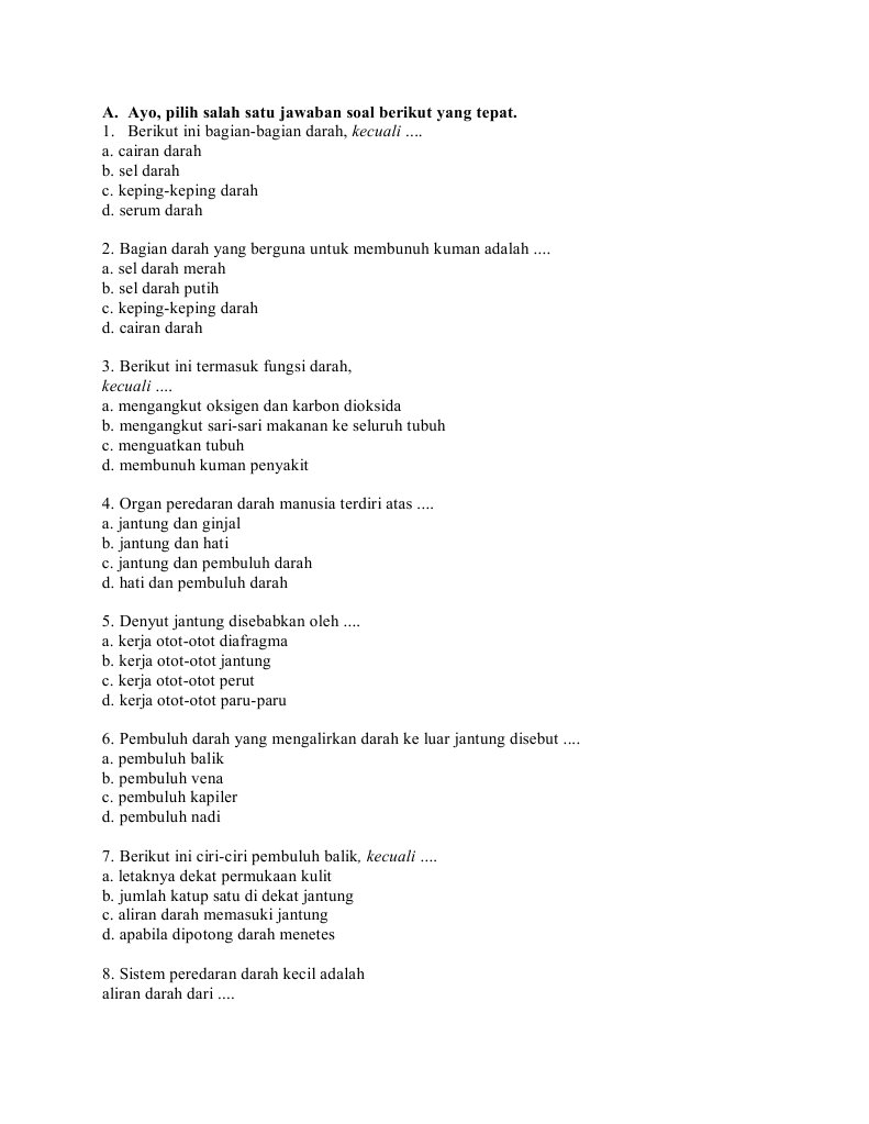 Soal Sistem Perdaran darah Manusia Kelas 5 | BANK SOAL …