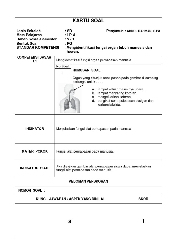 soal latihan ulangan IPA SD kelas 5 tentang Pernapasan - Google …