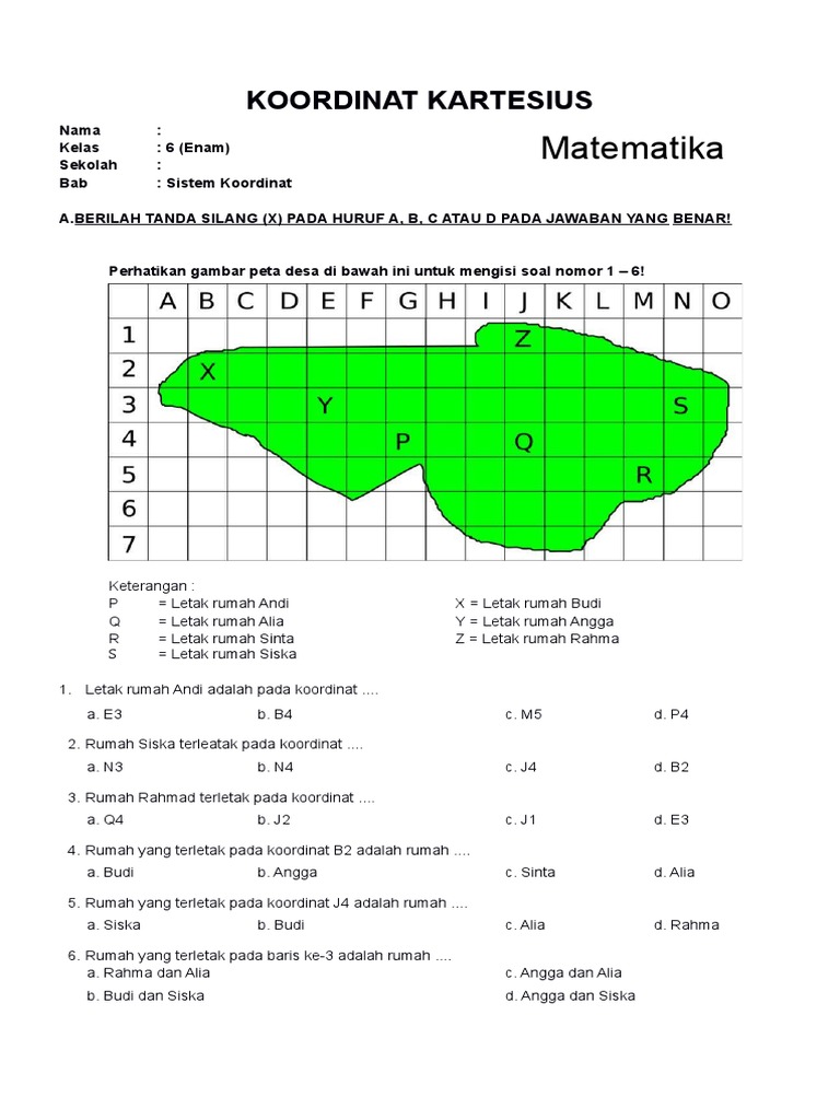 Soal Matematika SD Kelas 6 - Sistem Koordinat Kartesius | Download …