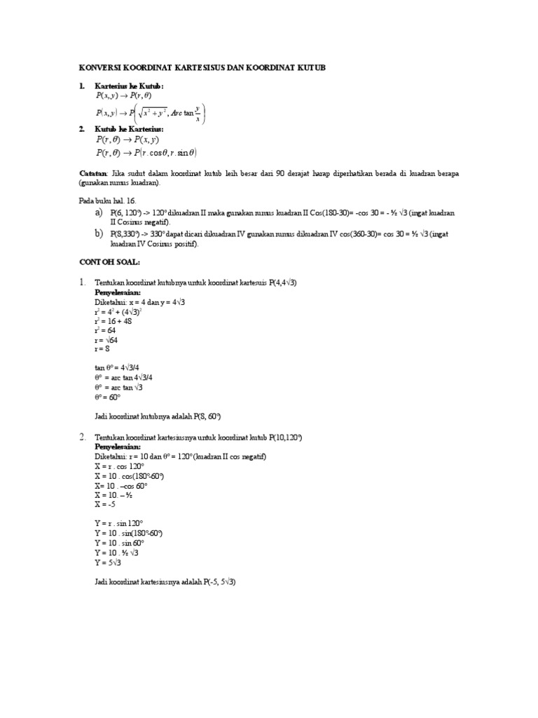 Contoh Soal Konversi Koordinat Kartesius Dan Kutub