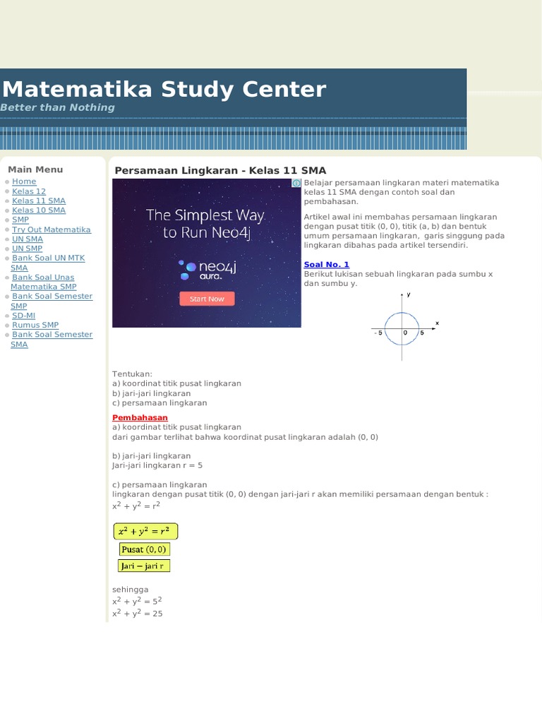 Contoh Soal Dan Pembahasan Persamaan Lingkaran Kelas 11 - Barisan Contoh