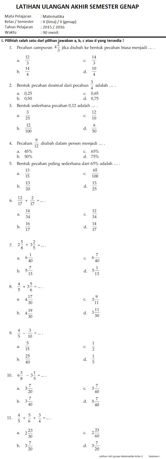 SOAL LATIHAN UAS GENAP MATEMATIKA KELAS V | guruKATRO