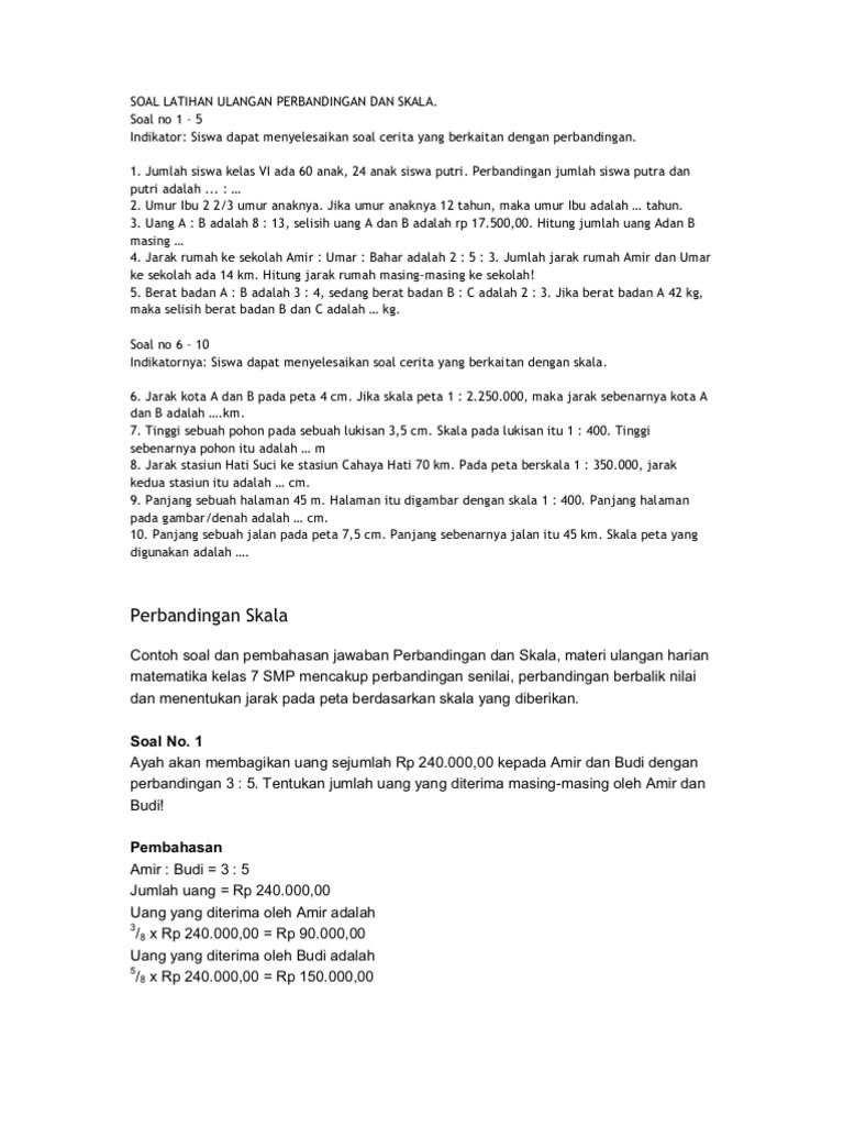 DOC) Contoh soal dan pembahasan jawaban Perbandingan dan Skala …