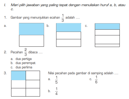 Soal-soal Pecahan Matematika Kelas 3 Semester 2 - SekolahDasar.Net