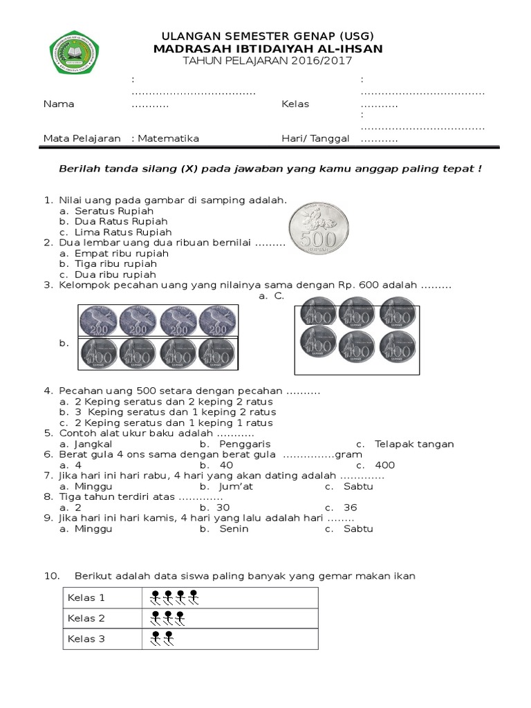 DOC) Soal Pilihan Ganda/ PG UTS Matematika Kelas 3 Semester 2/ Genap | Nirmala Sari - Academia.edu