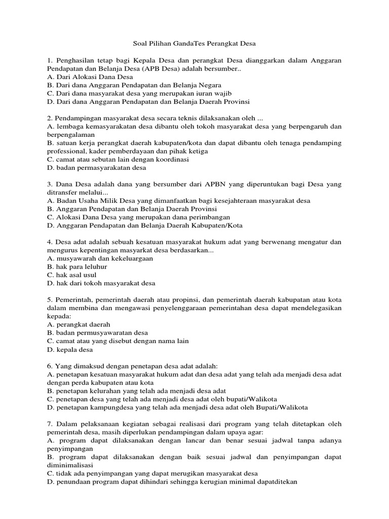Soal Pilihan GandaTes Perangkat Desa