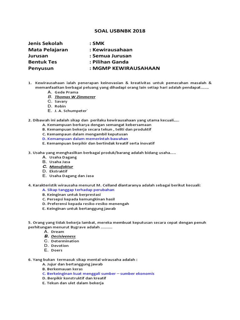 25 Soal Kewirausahaan Pilihan Ganda Dan Jawabannya Kelas 12 SMK - Pilihan Ganda