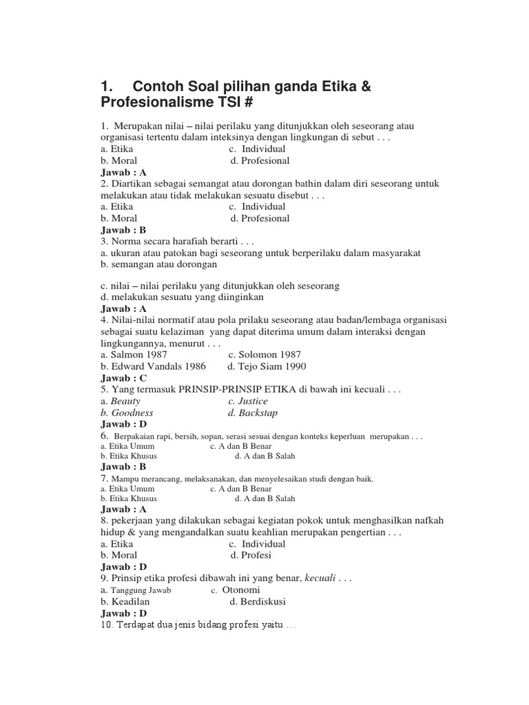 Contoh Soal pilihan ganda Etika