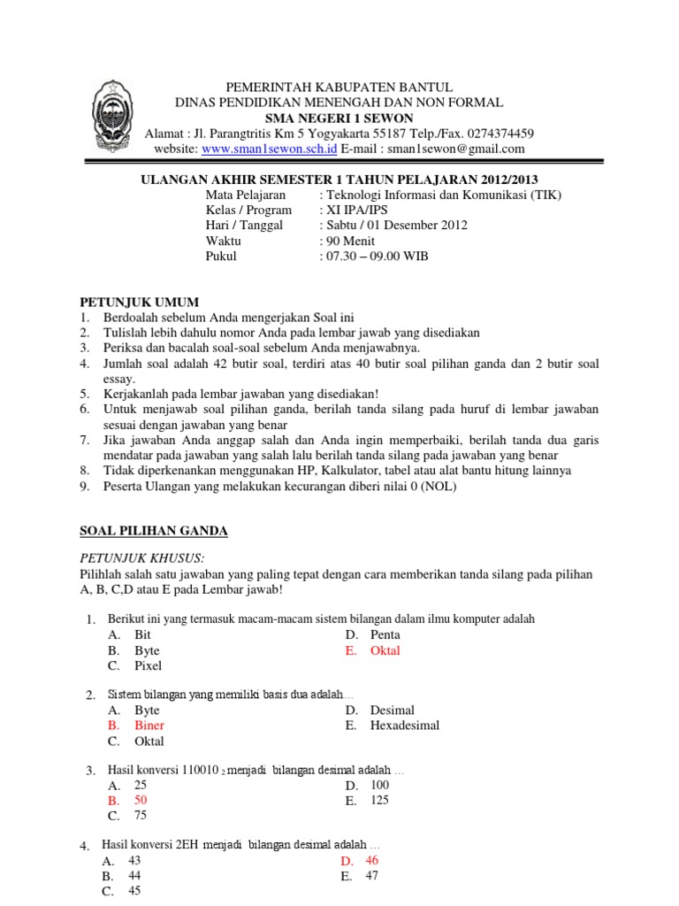Contoh Soal Pemrograman Dasar Kelas 10 Semester 2 Dan Jawabannya - Bagikan Contoh