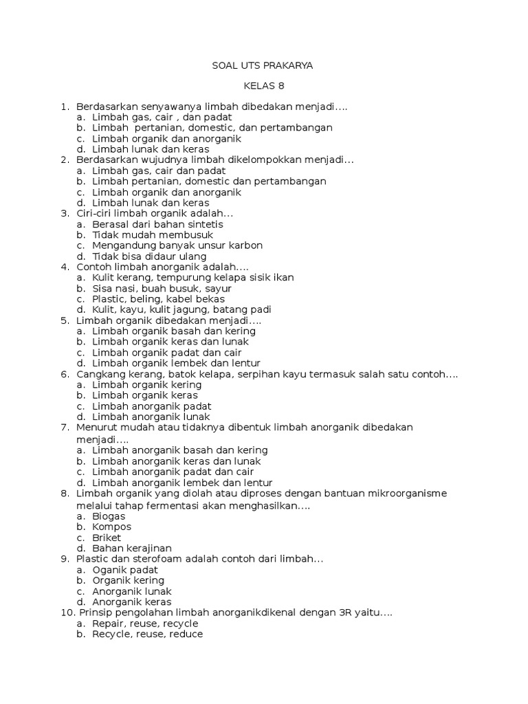 Soal Uts Prakarya 8
