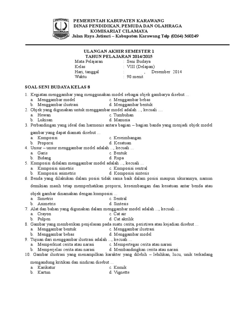 Lengkap - 50+ Contoh Soal UTS Seni Budaya Kelas 8 SMP/MTs dan …