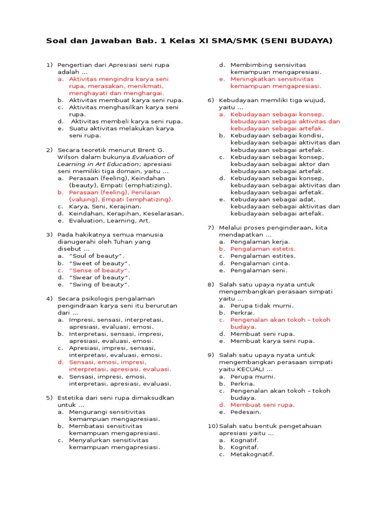Soal Dan Kunci Jawaban USBN Seni Budaya Kurikulum 2013 Tahun …