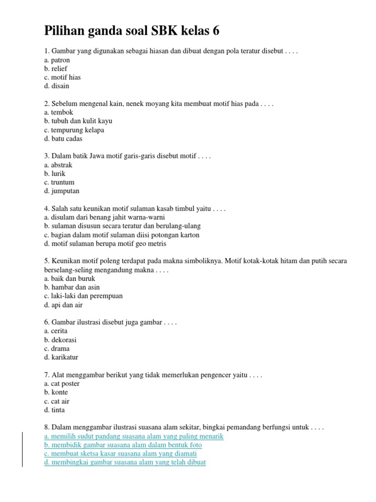 Soal Sbk Kelas 6 Semester 1 Pilihan Ganda