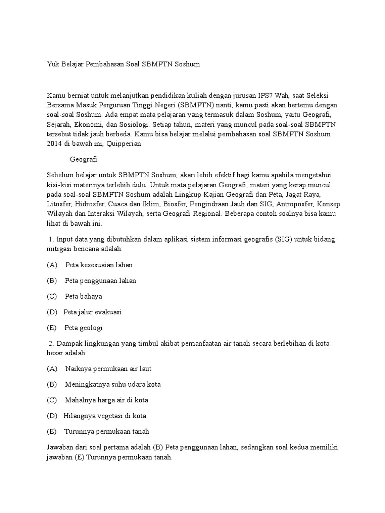 Contoh Soal Sbmptn Ips 2014 Dan Pembahasannya Dapatkan Contoh …