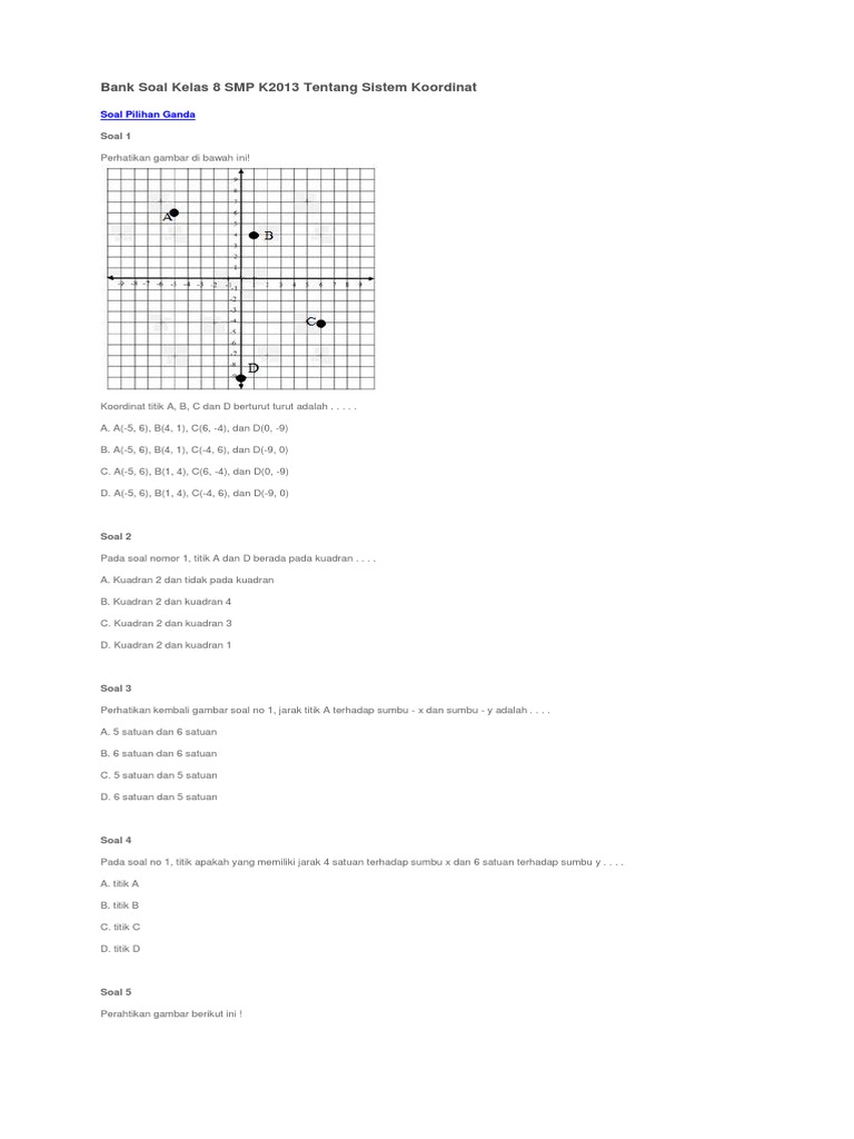 Soal Sistem Koordinat Smp Kelas 8