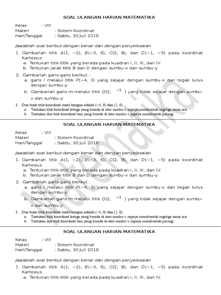 Contoh Soal Sistem Koordinat Kelas 8 - Contoh Soal Terbaru