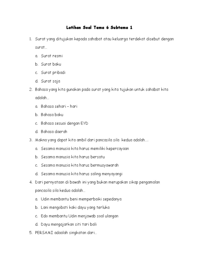Soal Tematik Kelas 6 Tema 3 Subtema 1 Dan Kunci Jawaban - TEORI …
