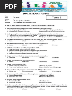 Soal Tematik Kelas 6 SD Tema 6 Subtema 1 Lingkungan Sehat.docx …